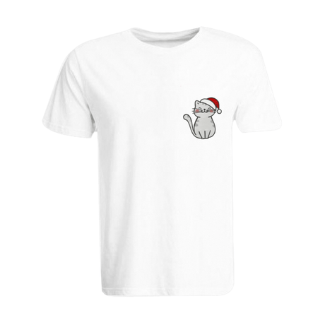 BYFT Embroidered For You Cat with Christmas Cap Designed T-Shirts
