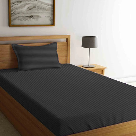 BYFT Tulip - Fitted Sheet 1 Cm Satin Stripe| Cotton, 300 TC, Soft & Luxurious Bed Linen