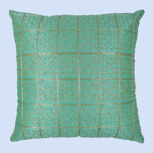 BYFT Orchard Cushion Cover 16 x 16 inch (Golden Checks Design - Green) 40 x 40 cm Luxury Decorative Cushion Cover for Sofa, Bed & Living Room - Set of 02