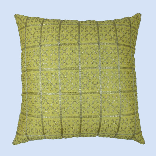 BYFT Orchard Cushion Cover 16 x 16 inch (Golden Checks Design - Yellow) 40 x 40 cm Luxury Decorative Cushion Cover for Sofa, Bed & Living Room - Set of 02