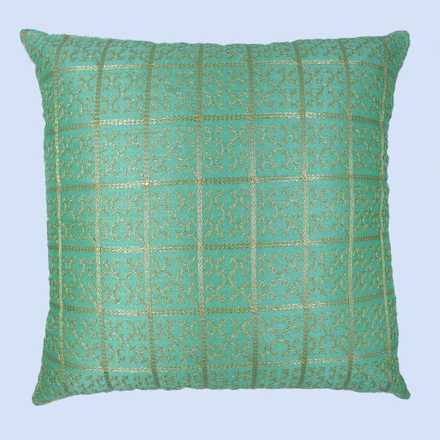 BYFT Orchard Cushion Cover 18 x 18 inch (Golden Checks Design - Green) 45 x 45 cm Luxury Decorative Cushion Cover for Sofa, Bed & Living Room - Set of 02