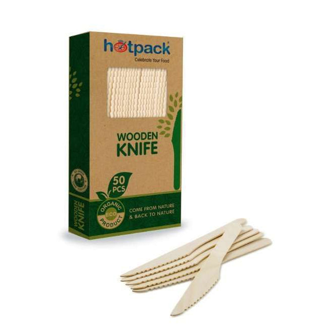 Hotpack Wooden Knife - 50 Pcs | Biodegradable Utensils