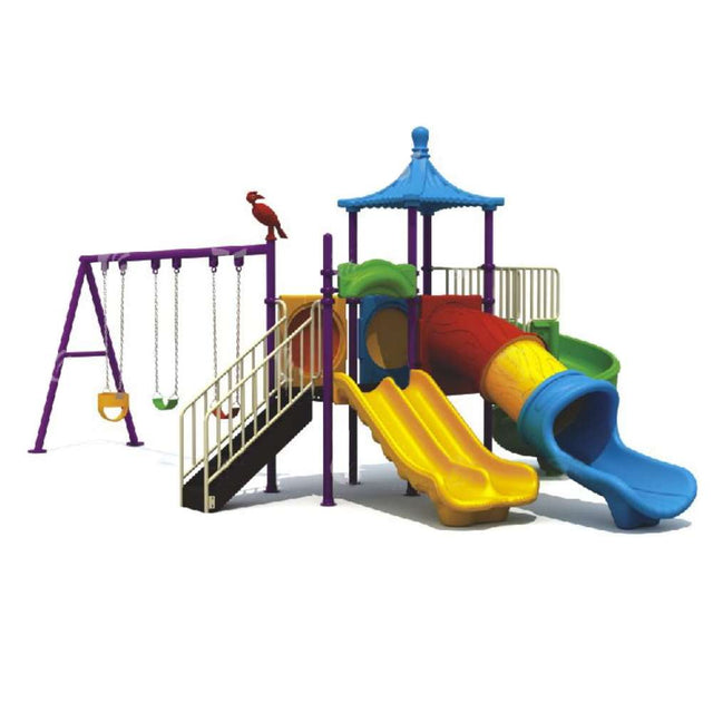 BYFT Four Slide And 3 Kids & Adult Swings Clip Playground